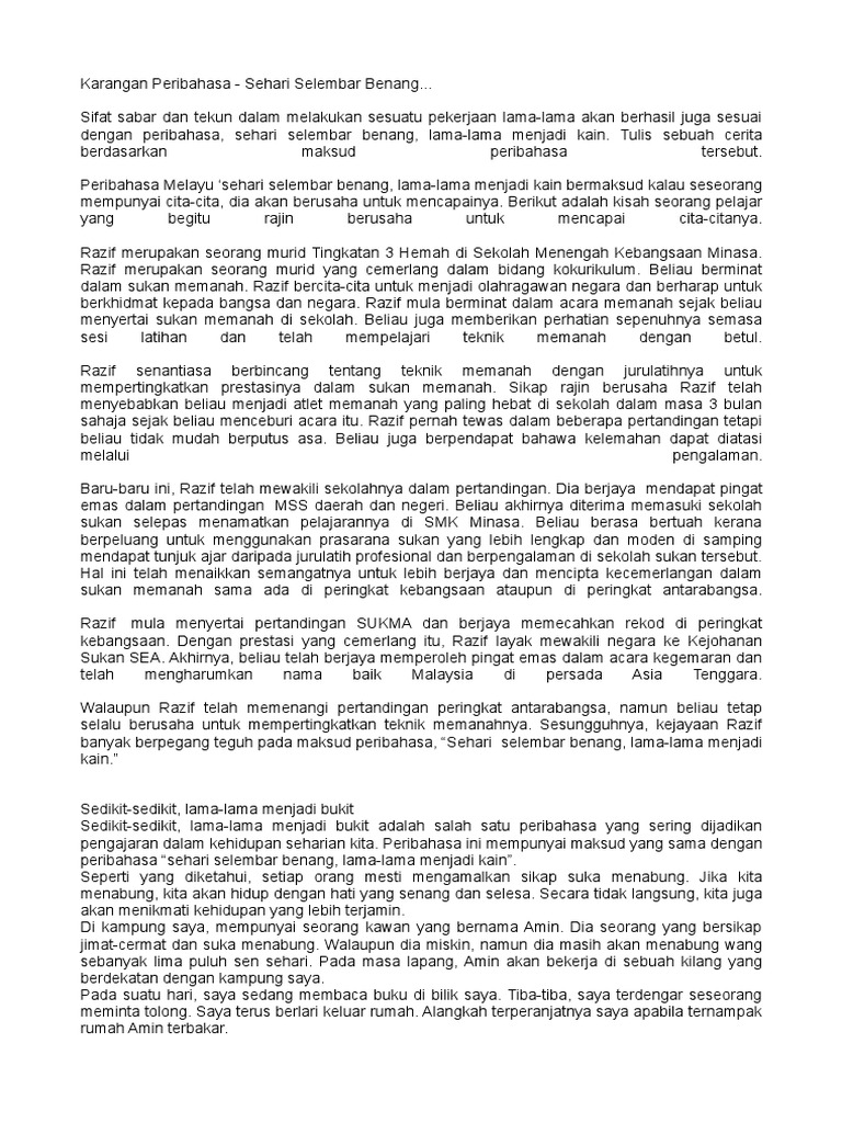 Contoh Karangan Peribahasa Sedikit Sedikit Lama Lama Jadi Bukit Mrnewsentry